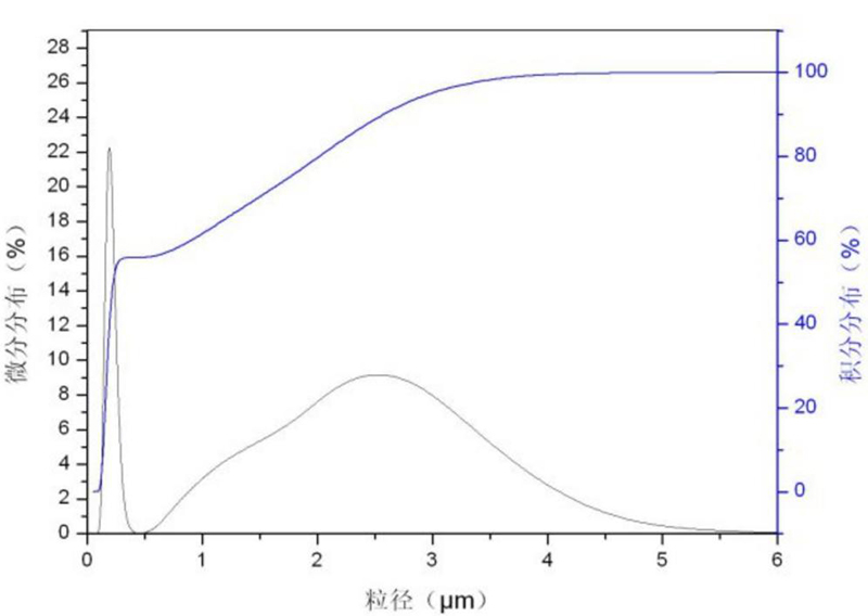 從波形來看:0—0.5μm ;D50為 0.18μm ;0.5—5μm ;D50為 1.91μm